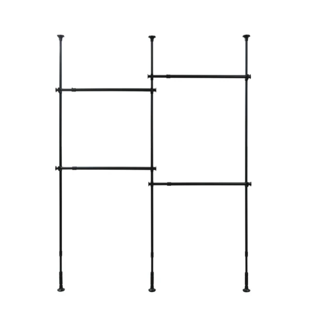 ●天井と床で突っ張るだけで簡単に取り付けができる突っ張りワードローブです。高さと幅が調整できるのでお部屋に合わせて自由自在に調整可能です。ハンガーパイプは高耐荷重の安心設計です。壁面のデッドスペースを有効活用でき、収納力がアップします。ワードローブや物干し、ランドリーラックなどとしてお使いいただけます。